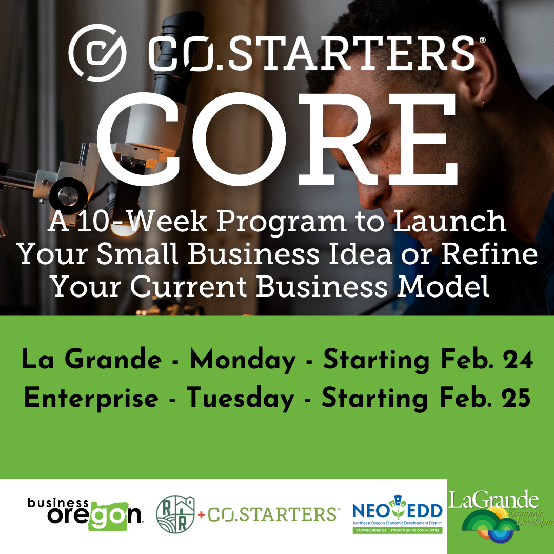 CO.STARTERS CORE, a ten-session workshop series, equips entrepreneurs with the insights, relationships, and tools needed to turn business ideas into action. CO.STARTERS will launch the last week of February on Monday nights in La Grande and Tuesday nights in Enterprise. Class sessions will run from 6-9 p.m. for ten weeks.