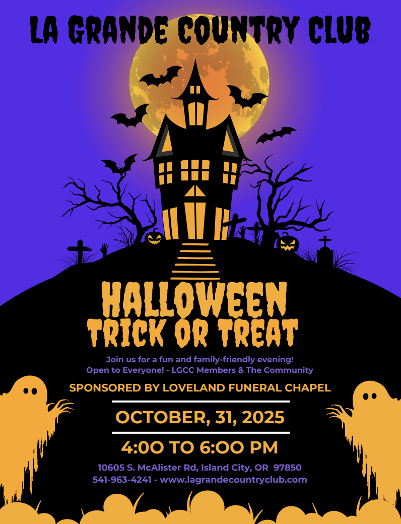 Join the La Grande Country Club on October 31st from 4-6 PM for a fun and family-friendly evening.
