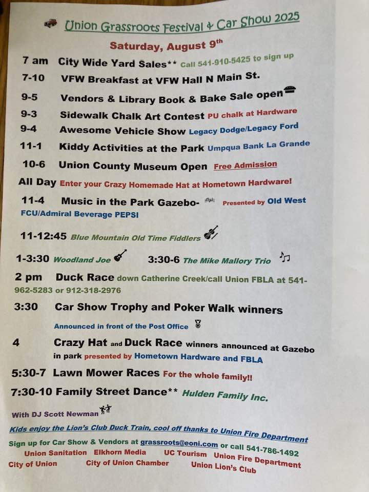 City Wide Yard sales, vendors, car show, live music, kiddy carnival, duck races, lawn mower races, pony rides, family street dance and much more!!!